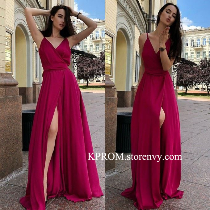 Long A Line Prom Dresses,Side Slit Formal Evening Dress for Women Special Occasion