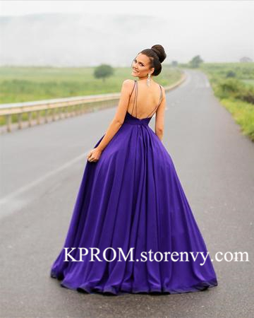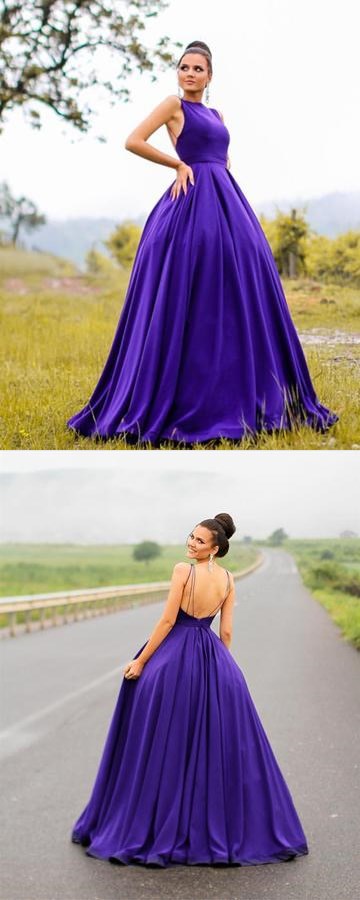 Elegant Long Prom Dress Backless Satin Royal blue Formal Evening Gown Ball Gowns