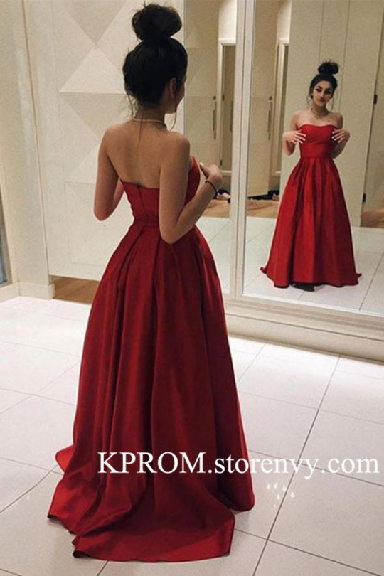 Strapless Burgundy Prom Dress Long,Back Open Evening Dresses,A Line Formal Dress Party