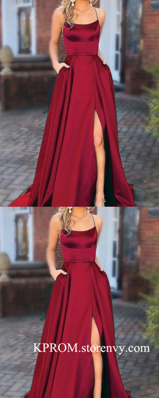 Halter Wine Red Prom Dresses Long with Pockets,Simple A-line Women Party Dress,Formal Dress cheap online