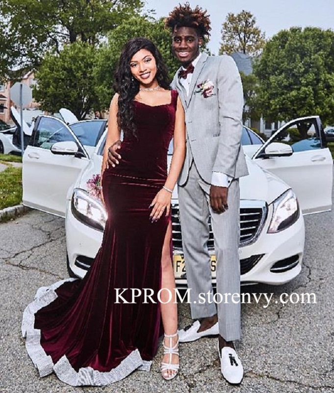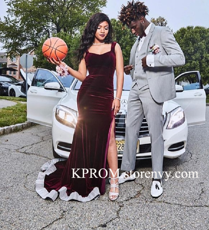 Vintage Burgundy Velvet Long Prom/Evening Dress With Side Slit,Women Long Mermaid Evening Gown,Sexy Formal Dress