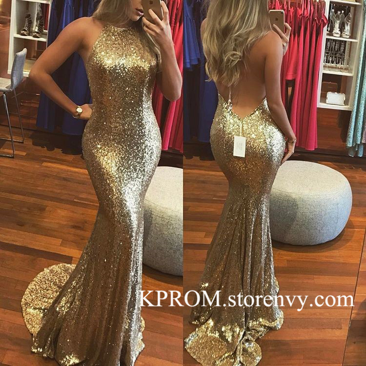 Sexy Backless Mermaid Sequin Evening Dress,Long Prom Dress,Custom Sleeveless Women Formal Dress