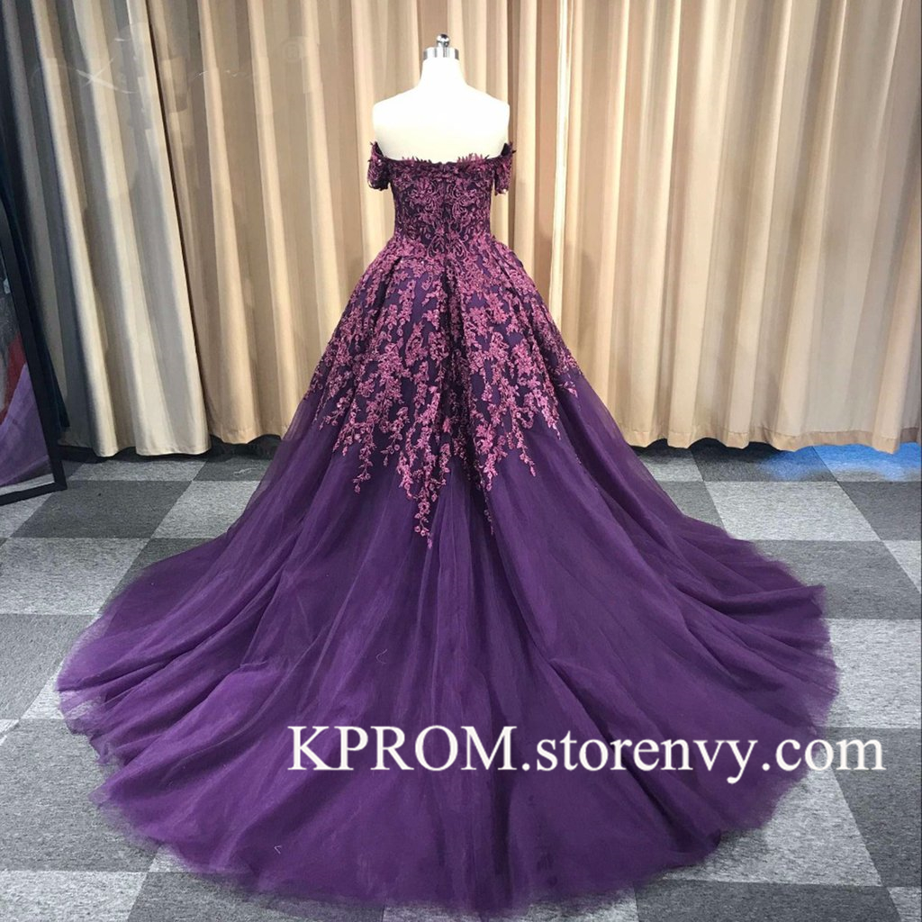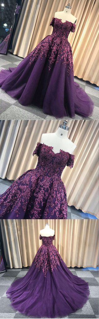 Elegant Purple Short Sleeve Prom Dress,Evening Gown with Lace,Back Open V Neck Women Formal Party Dress