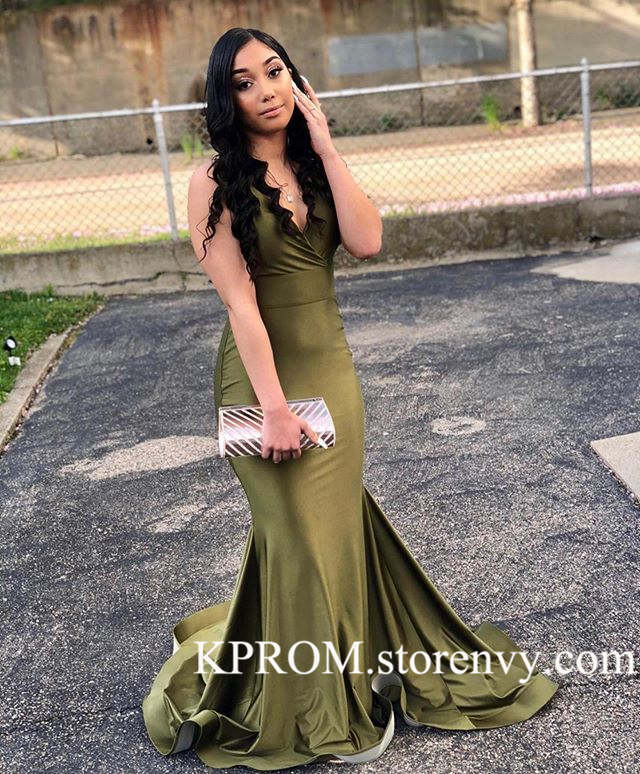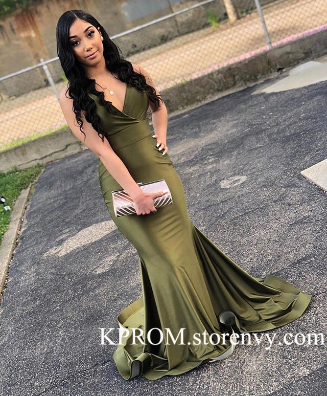 Sexy V Neck Women Formal Evening Dress,Sweep Train Prom Dress with Pleat,Back Open Dress for Prom Night