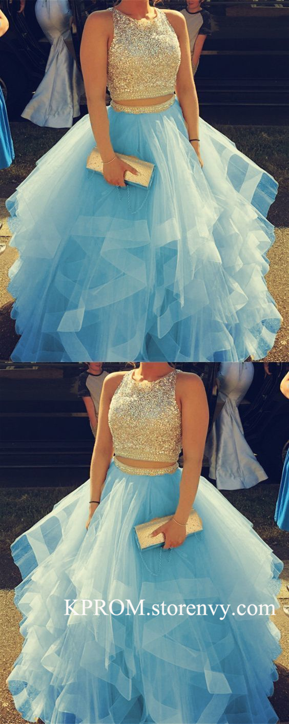 Charming Prom Dress,Elegant Tulle Crystal Beaded Puffy Ball Gown Prom Dresses,Tiered Formal Dress