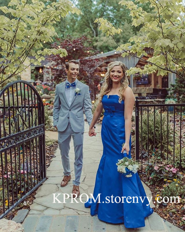 Simple Blue Mermaid Prom Dresses Strapless Sleeveless Women Evening Formal Gowns