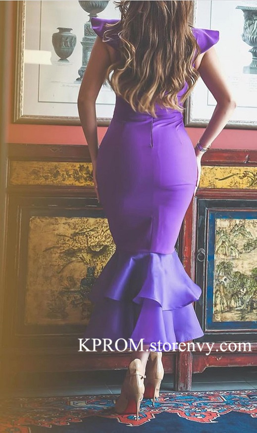 Purple Prom Dresses Cap Sleeve Mermaid Long Party Dress