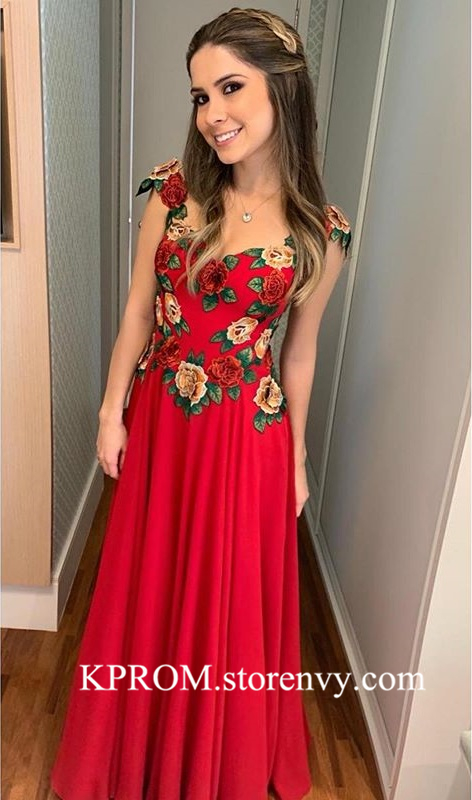 Beautiful Red Prom Dresses Long,Flowers A Line Formal Dress for women,Special Occasion Dress