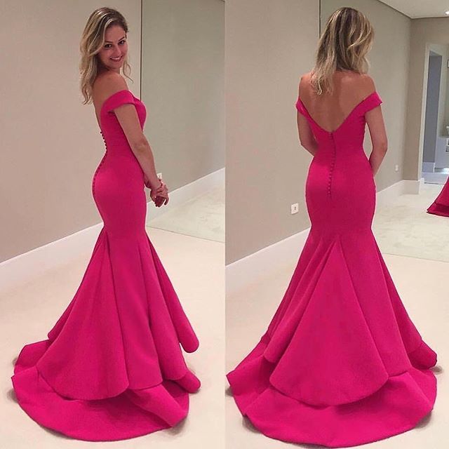 Off Shoulder mermaid prom dresses long open backs, Glamorous evening dresses With Train