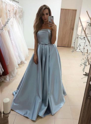 Cheap Satin Strapless Long Senior Prom Dress With Bowknot