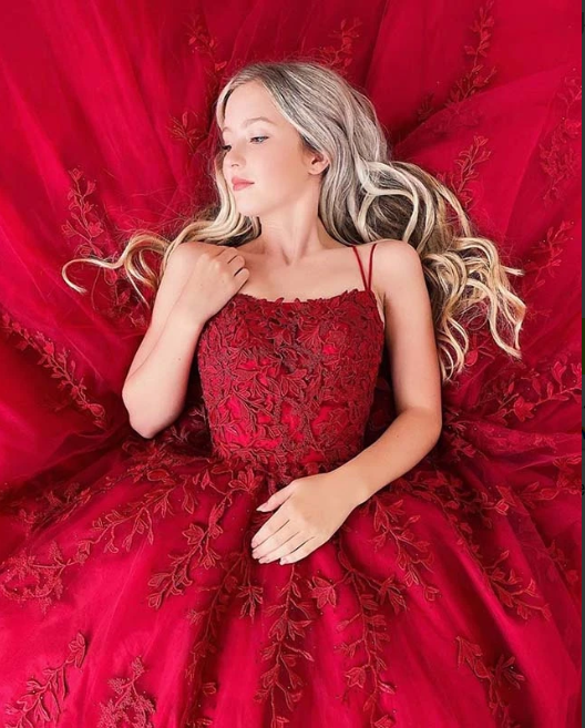 Red Lace Appliques Prom Dresses Ball Gowns Formal Dress