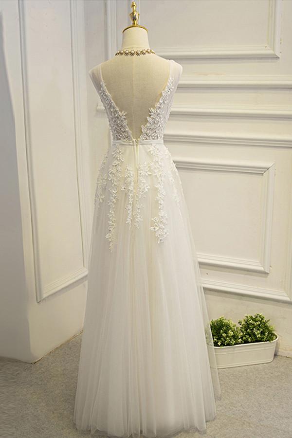 Simple A-line Lace Tulle V-Neck Prom Dress,Appliques Cheap Party Dress