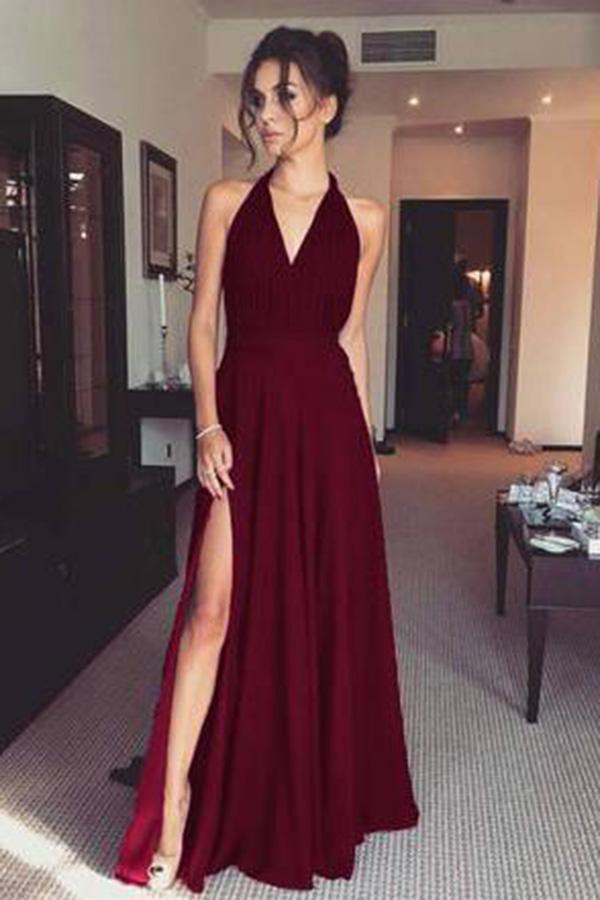 Cheap Sleeveless Floor Length V Neck Split Side Prom Dresses