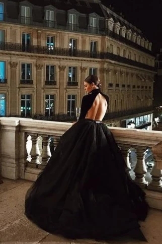 Vintage High Neck Black Ball Gown Prom Dresses with Long Sleeves
