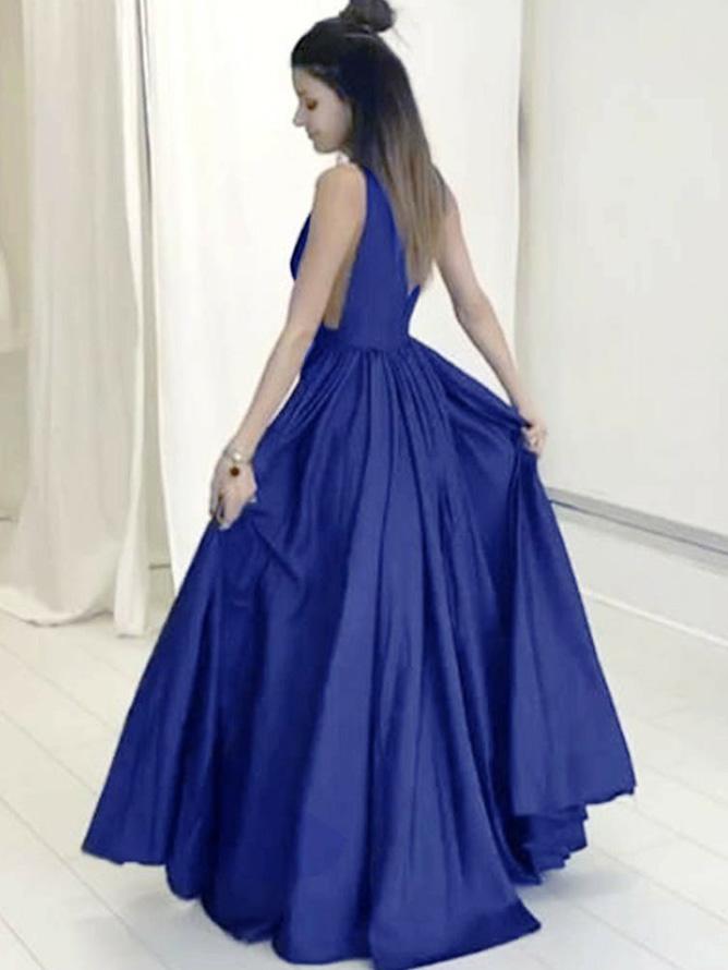 Deep V-neck A-line Long Prom Gowns Back Open Party Dresses for Women