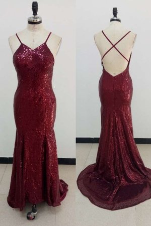 Sparkly Sequin Mermaid Prom Dress with Back Open Long Burgundy Gala Evening Gown