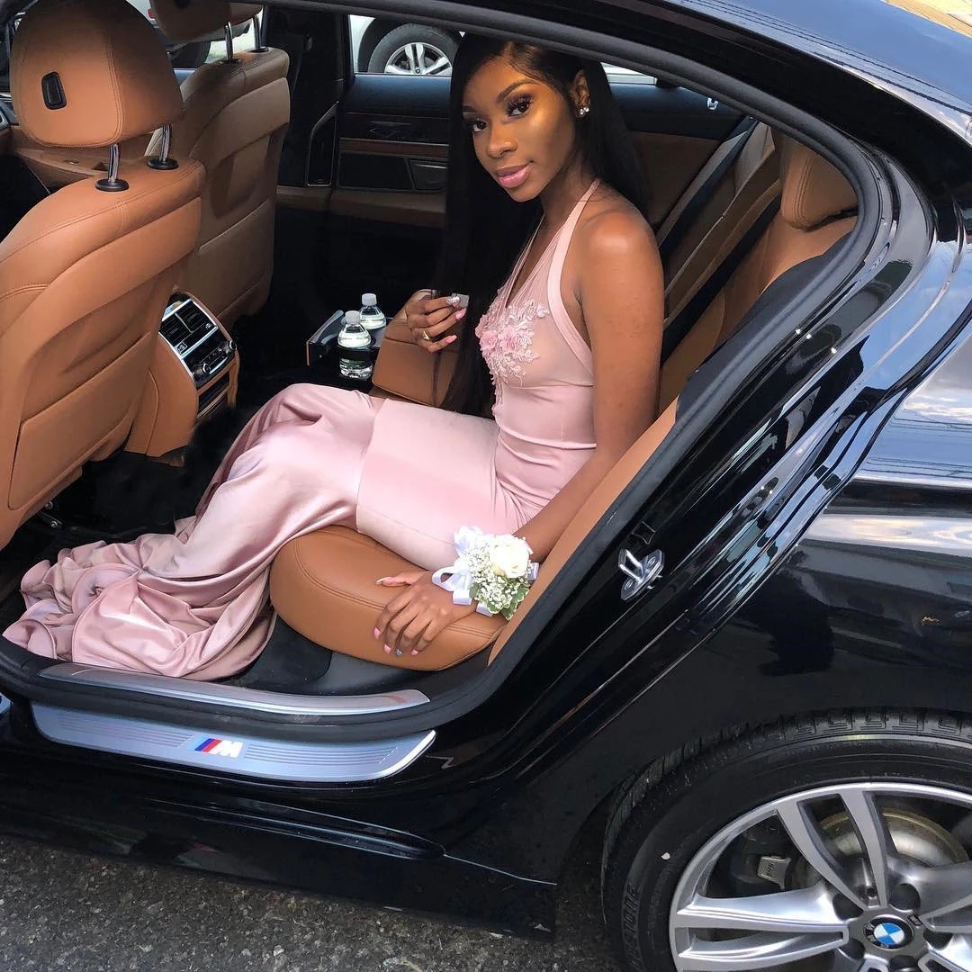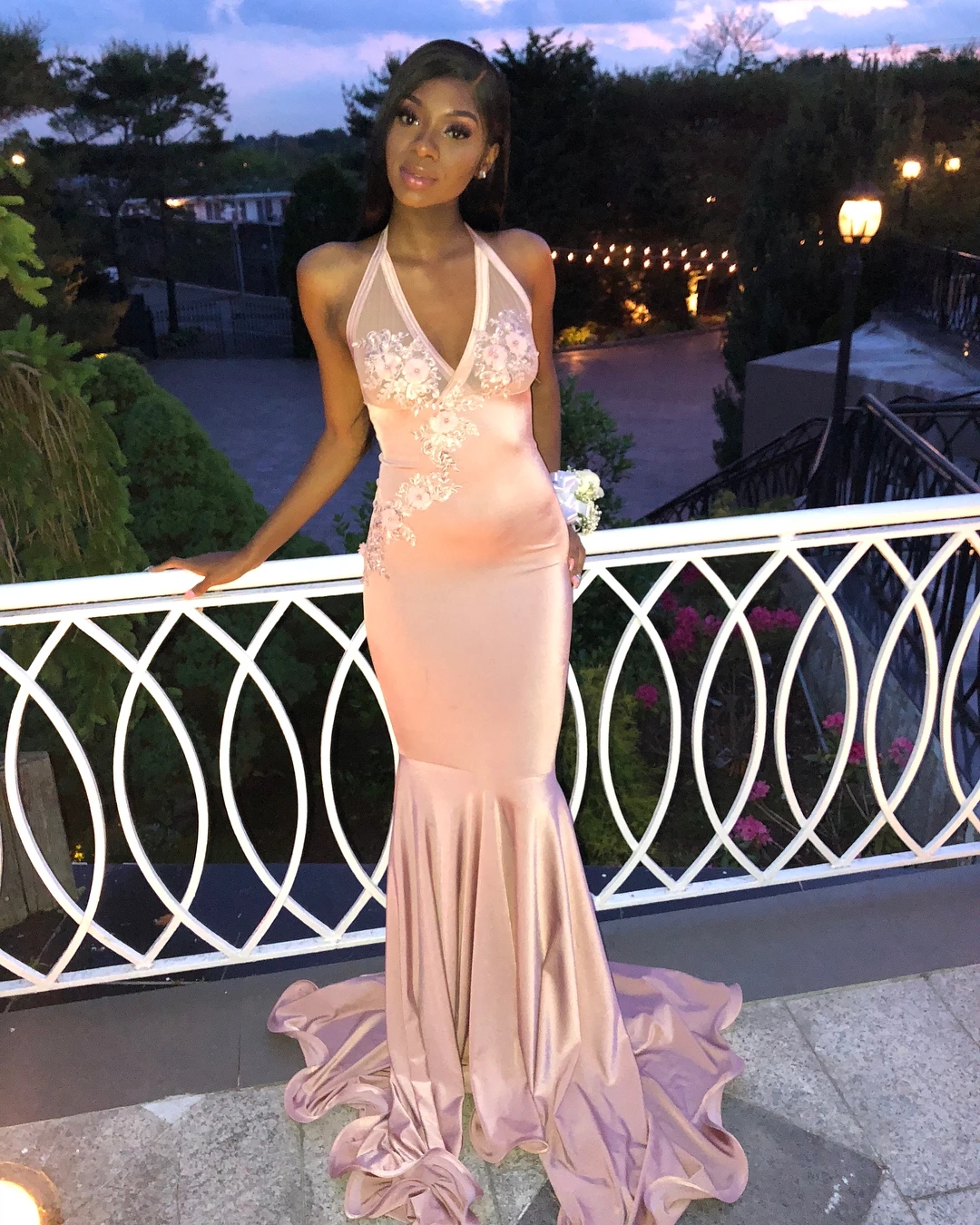 Sexy African Pink Pearl Pink Trumpet/Mermaid Sleeveless Natural Waist Appliques Prom Dresses