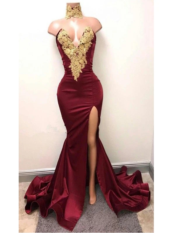 Chic Burgundy Prom Dresses Trumpet/Mermaid Appliques Sexy Prom Dress/Evening Dress