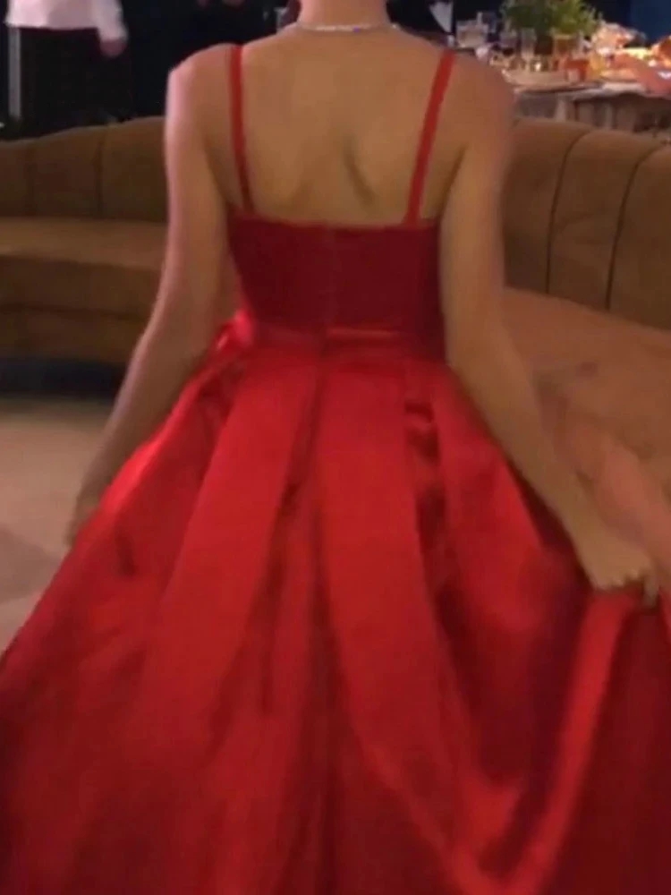 A Line V Neck Red Long Prom Dresses, Red V Neck Long Formal Evening Dresses