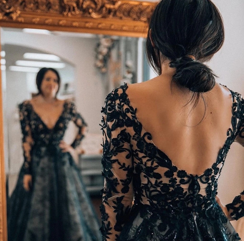 Elegant Long Sleeves Lace Prom Dress Women V Neck Long Train Evening gown for Wedding