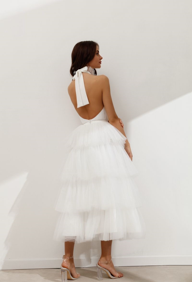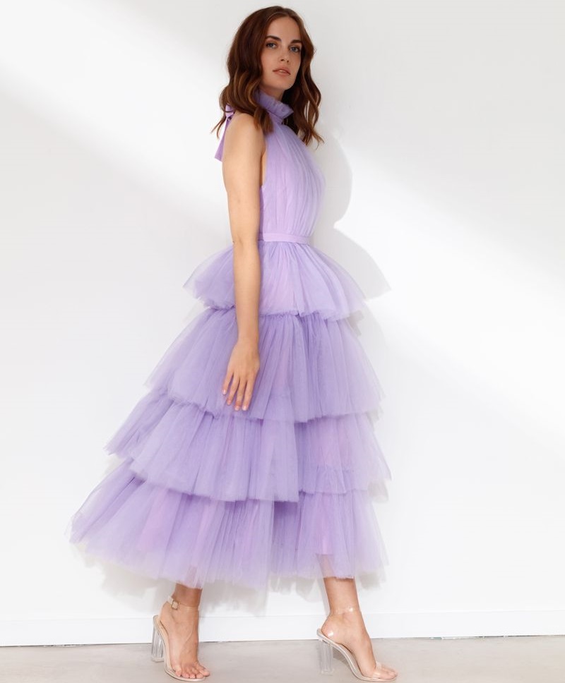Lilac Halter Mini Prom Dresses Backless Tiered Tulle Skirt Tea Length Wedding Party Dresses