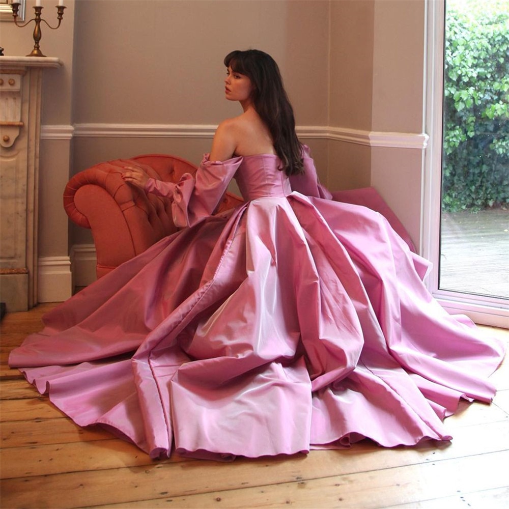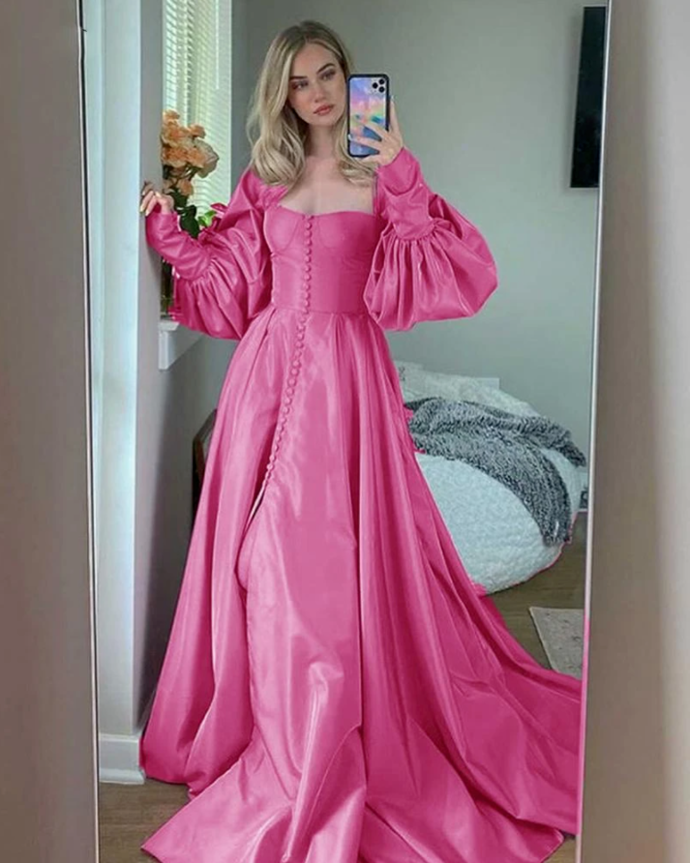 Elegant Pink Prom Dresses High Slit Evening Dresses Sweetheart A-line Long Party Gowns with Buttons