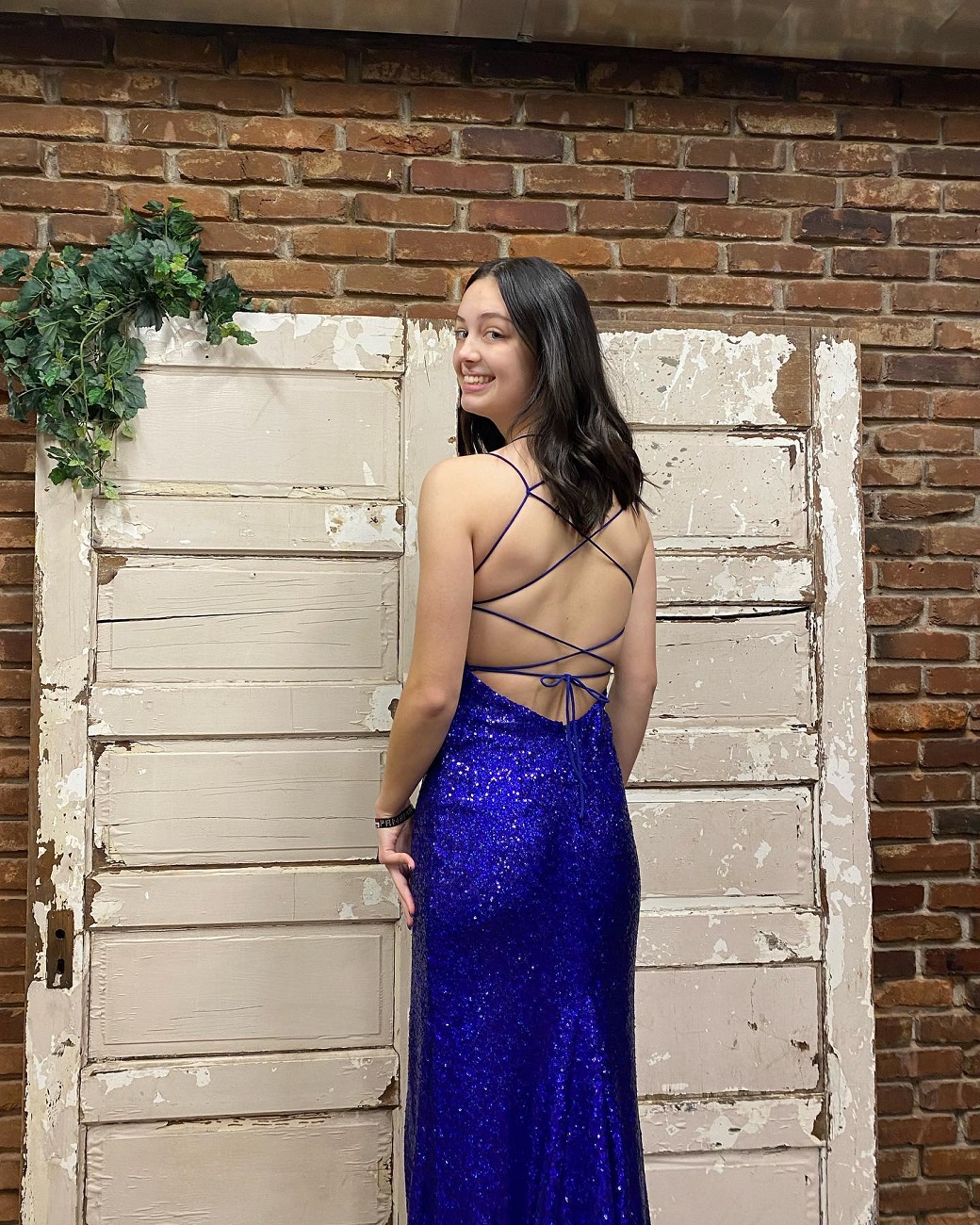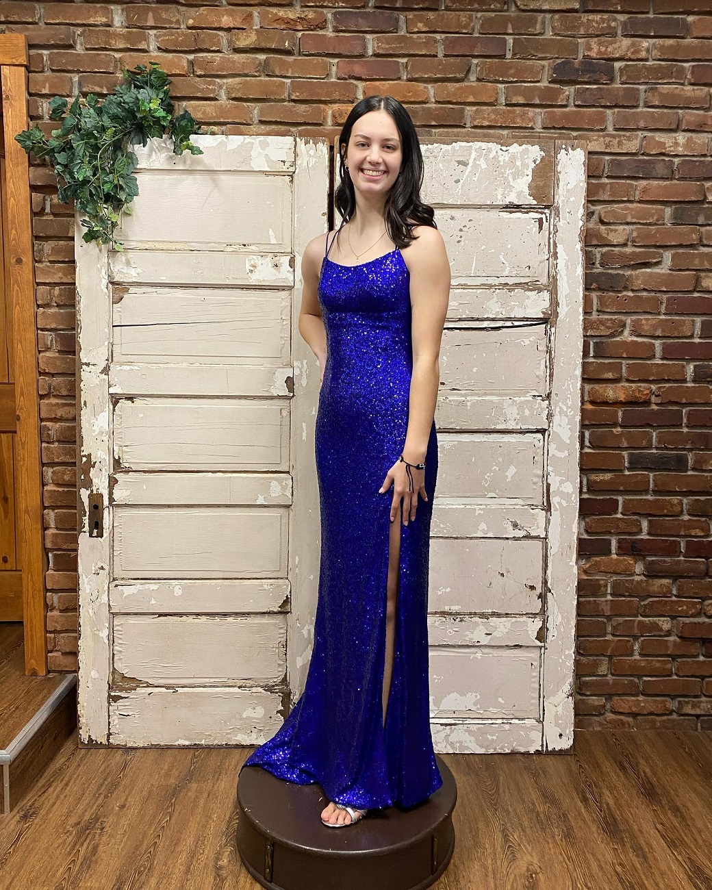 Long Sequin Prom Dresses with Slit,Royal Blue Party Dress for Wedding
