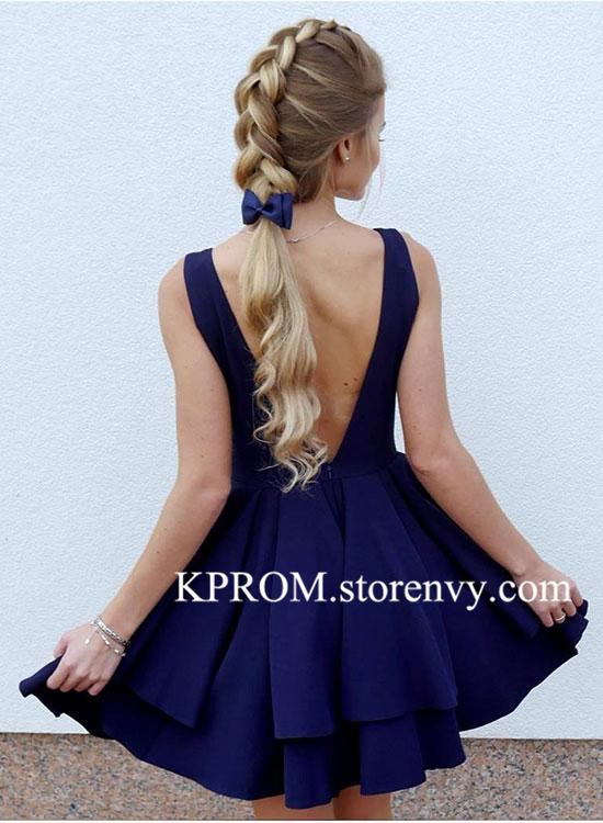 Simple A-Line V Neck Black Satin Short Homecoming Dresses,Charming Short Prom Dress
