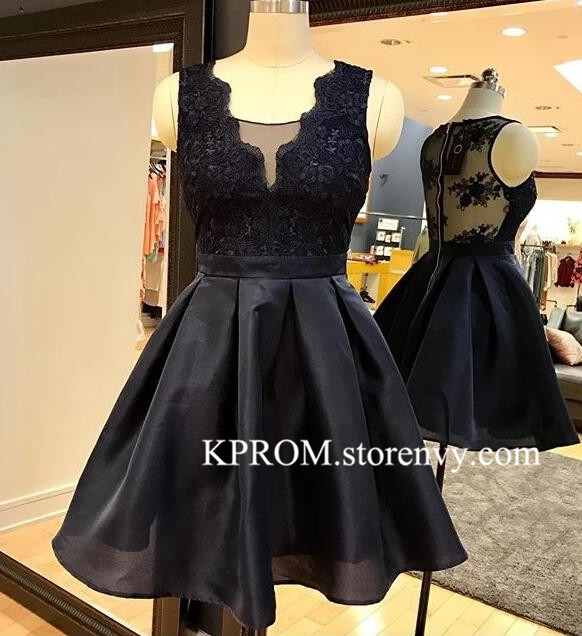 Vintage Black A-Line Knee Length Homecoming Dresses Para Sweetheart Lace Sheer Back Cocktail Dresses