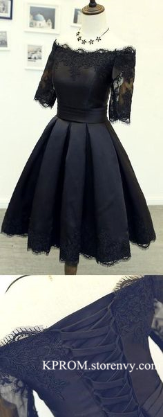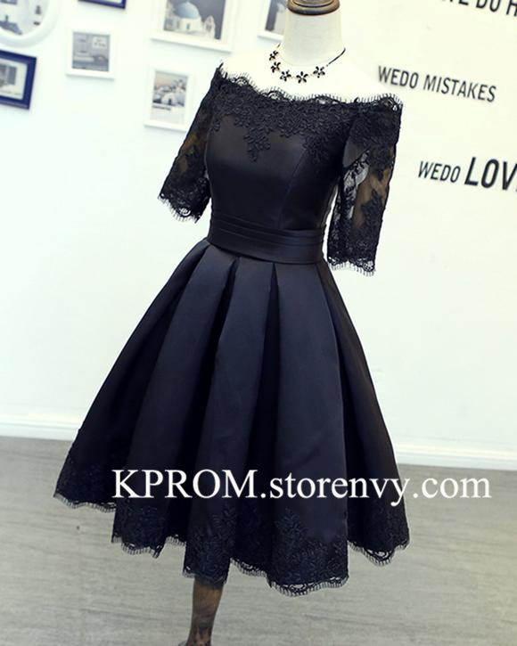 Black Short Knee Length Cocktail Dresses Lace Appliques Women Formal Party Gowns Homecoming Dress