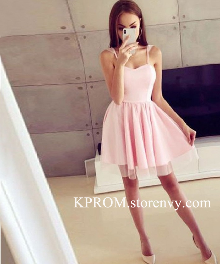 Cute Pink Short Spaghetti Straps Cocktail Dress,A Line Mini Pleated Homecoming Dresses