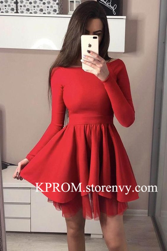 Red Long Sleeve Cocktail Dress Evening Wear,Cocktail Dresses for Women,Designer Semi Formal Dress,Party Dress