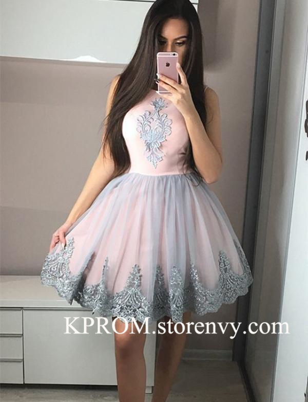 lace prom dresses short,A-Line Homecoming Dress, Homecoming Dress With Appliques, Sleeveless Homecoming Dress, Cute Homecoming Dress,Short Prom Dress