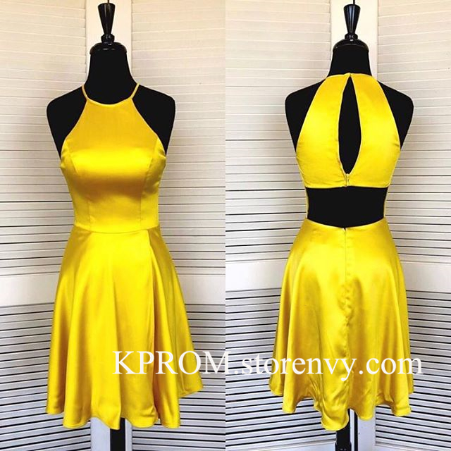 Halter Cocktail Dresses,Short Prom Dresses,Back Open Cocktail Dresses,Gold Cocktail Dresses,Graduation Dresses Backless
