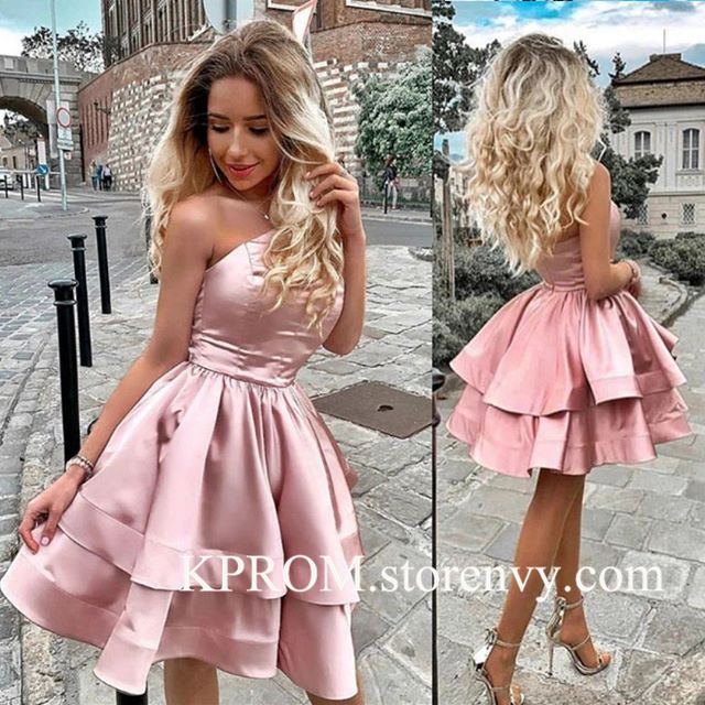 Junior One Shoulder Stretch Satin Homecoming dresses,Cheap Tiered Homecoming dress, Hoco Dresses