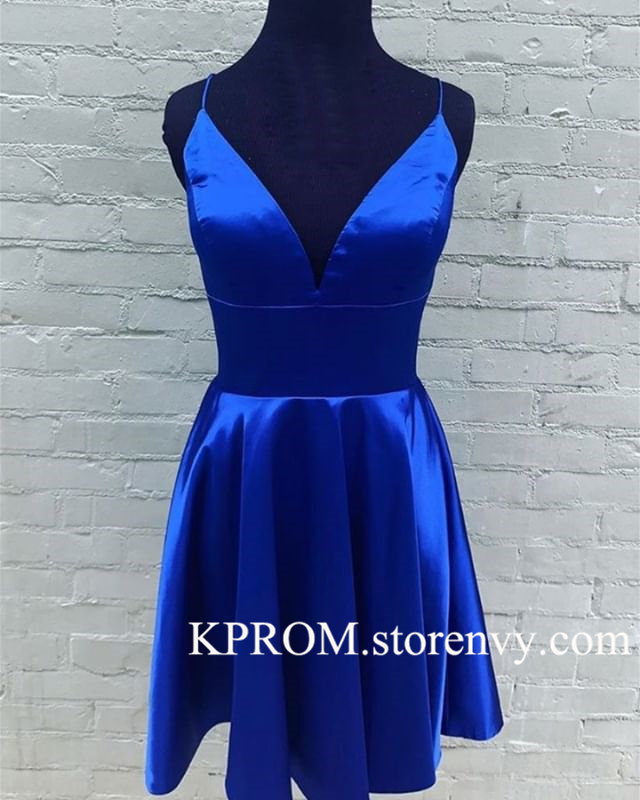 Simple Royal Blue Satin Homecoming dresses,Cheap A-Line V Neck Cocktail dress