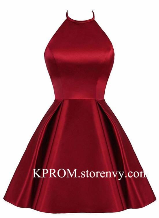 Simple Short Burgundy Junior Homecoming Dresses,Back Open Cocktail Dress Mini