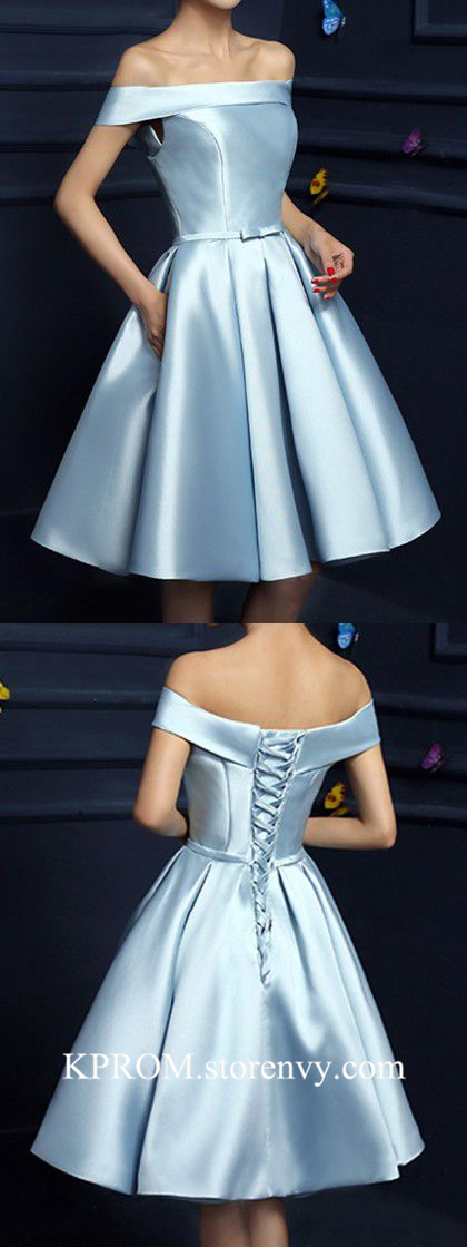 Elegant Red Off the Shoulder Homecoming dresses with Pockets,Cute Blue Corset Hoco Dresses with Belt