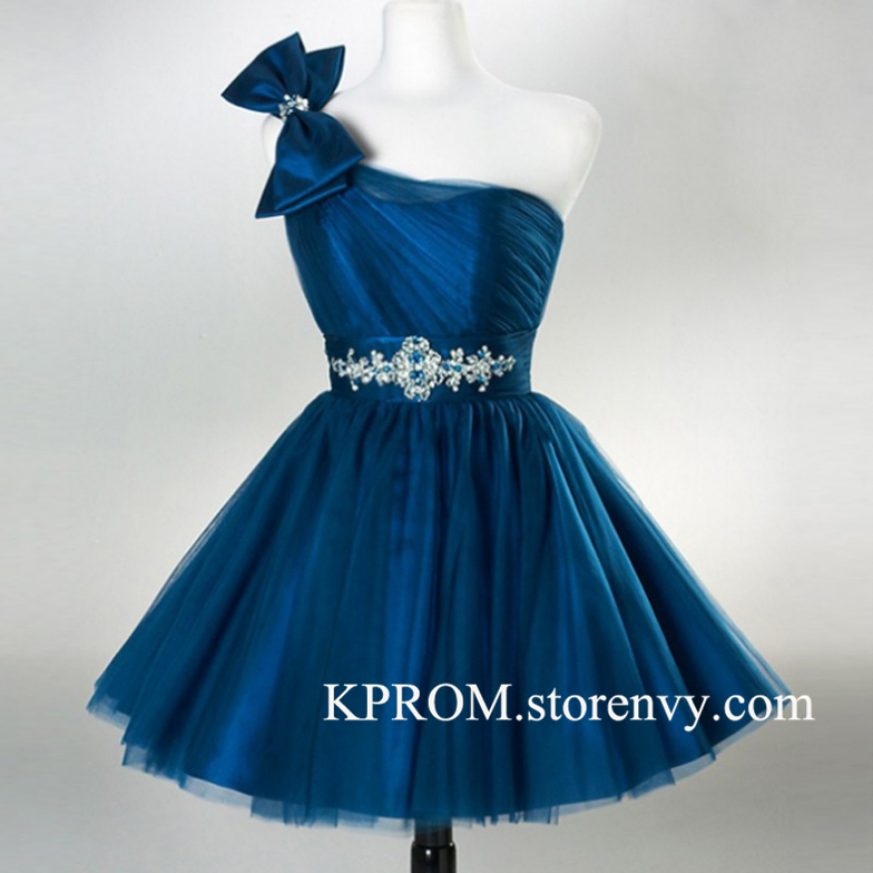 Women Short Tulle cocktail dresses One Shoulder homecoming dress with Crystal Belt Bow Plus Size