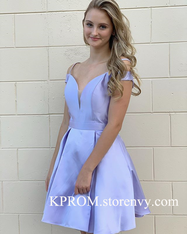 Modest homecoming dresses,Back Open V Neck Dress for homecoming,Blue Short Party Dress,Hoco Dress