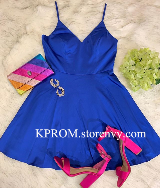 Cheap Fall Royal Blue Short cocktail Dress Spaghetti Straps V Neck Simple Back Open Semi Formal Dresses,Special occasion dresses