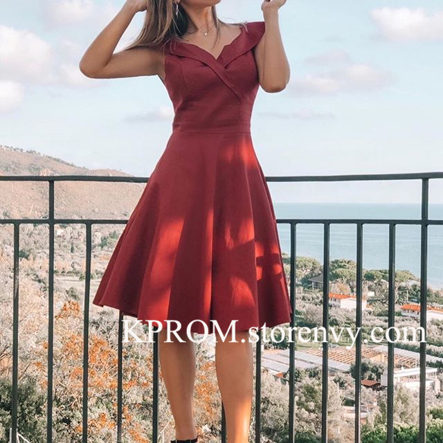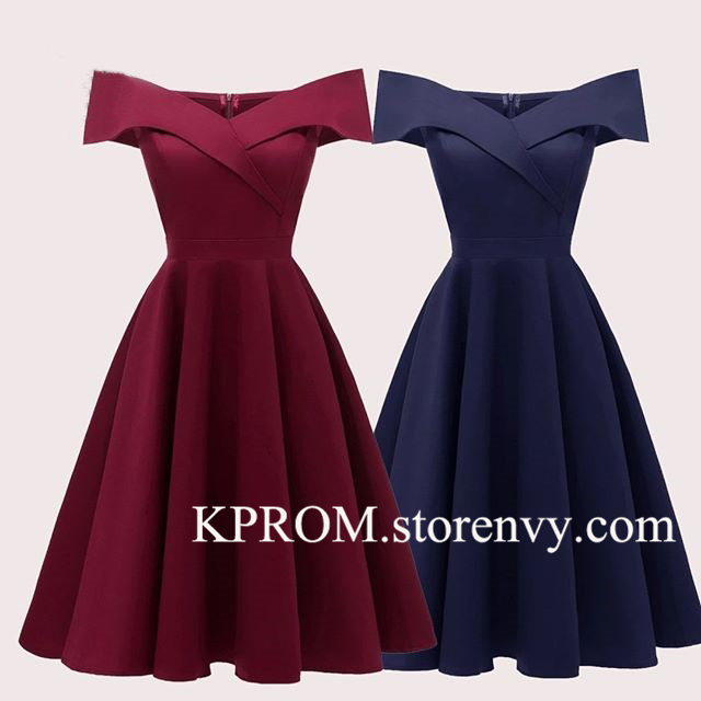 Burgundy A Line Fall Cocktail Dress for Wedding,Satin Prom Party Dress,Navy Evening wear for women
