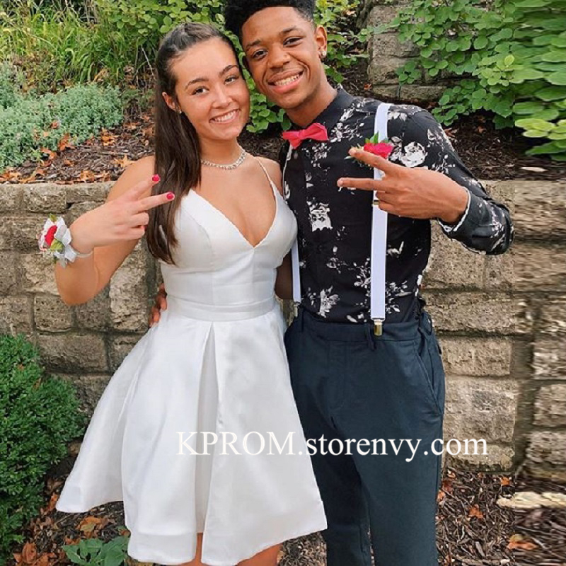 Simple Elegant Homecoming dresses,white V Neck Cocktail Dress,Juniors Semi Formal Dresses
