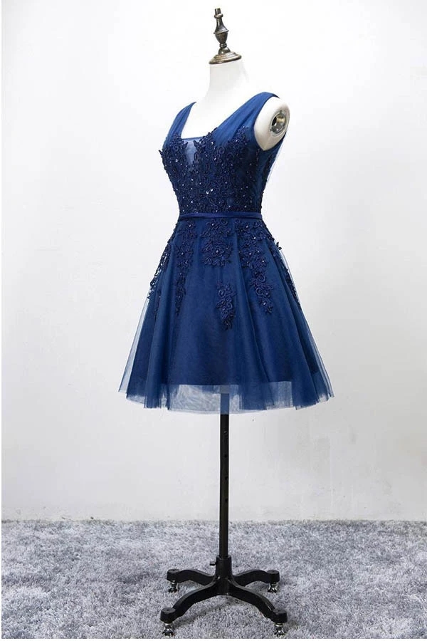 Sleeveless Lace-Up Tulle Short Homecoming Dress Lace Appliques