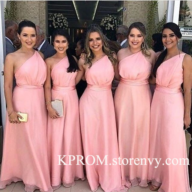 Pink One Shoulder Bridesmaid Dresses,Long Chiffon Wedding Guest Dresses, Maid of Honor,Women Party Gown