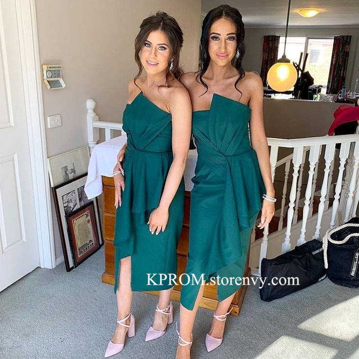Asymmetrical Strapless Dark Green Bridesmaid Dress,Backless Cheap Wedding Party Gown