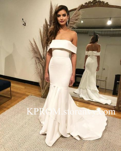 New Mermaid Wedding Dress Long White Sweep Train Bridal Gown