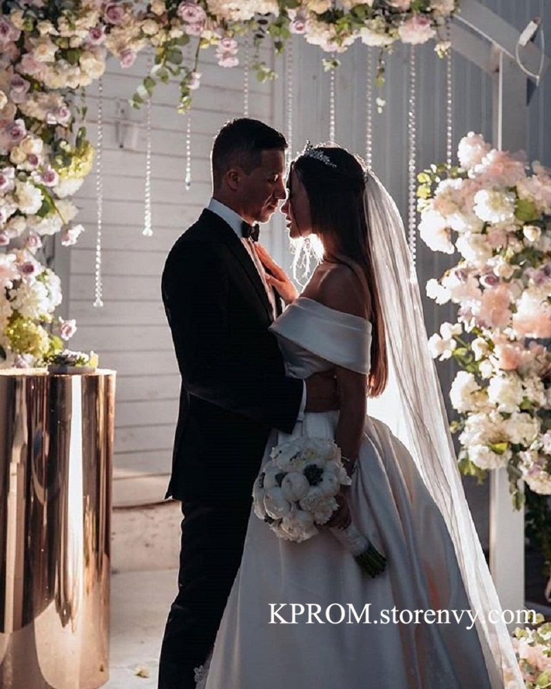 Off The Shoulder Princess Ball Gown Wedding Dresses Pleats Satin Vintage Wedding Gowns