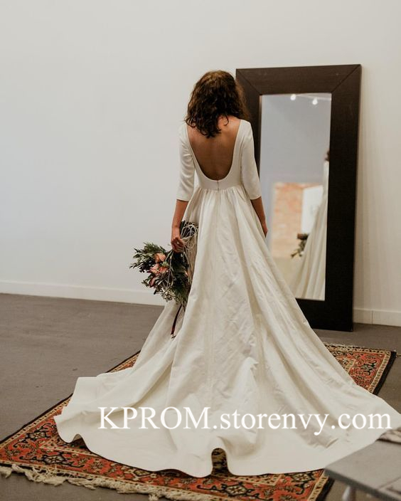A-line Wedding Dresses,Boat Neck Wedding Dress,Half Sleeves Bridal Dress,Charming Backless Bridal Gown
