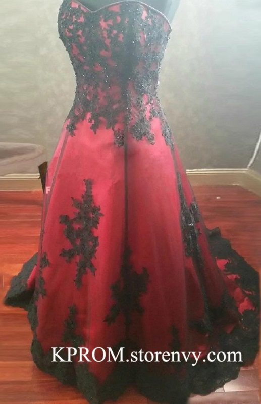 Black and Red Wedding Dress Long,Lace Applique Corset Sleeveless Wedding Gown,Bridal Dresses